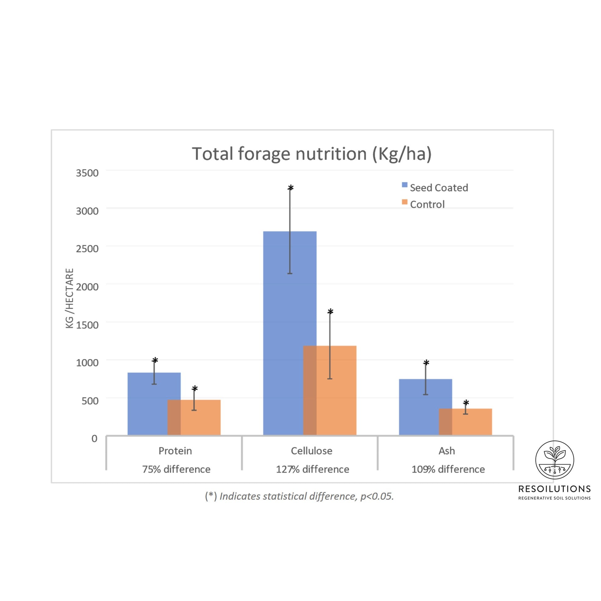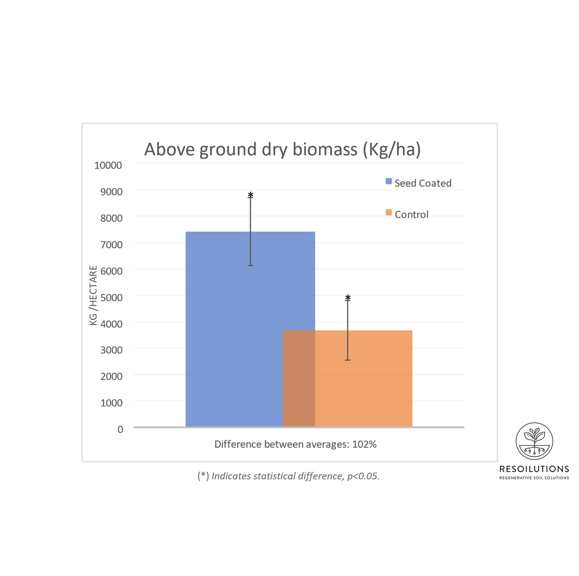 Yield increased by +4.3% by coating the seeds with 8L Resoiler compost/100kg of seeds.